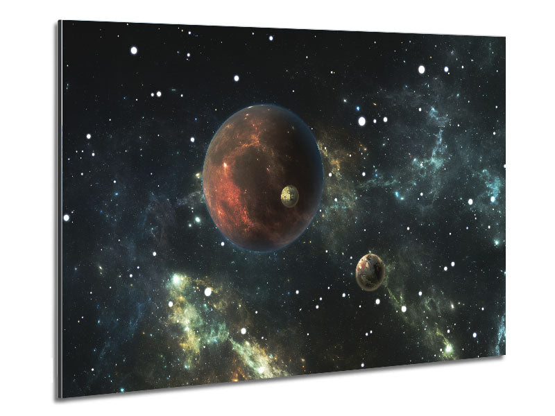 Planets in the dark skies Printed on brushed aluminium dibond. A modern way to display art and easy to maintain.