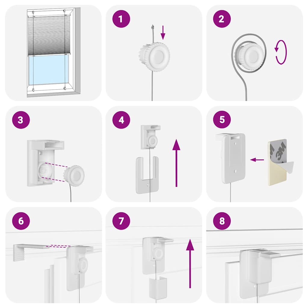 Elevate your room's style and functionality with this pleated blind, offering privacy and elegance. Durable and low maintenance: Made from 100% polyester, the pleated blind is built to last and resist wear and tear. They are also easy to clean, typically requiring light dusting or wiping with a damp cloth.Privacy and sun protection: The blind is not transparent but also not fully darkening, providing optimal privacy and glare protection with its pleated fabric. You can adjust the level of privacy by moving it up or down.Two assembly ways: You can attach the pleated blind to the wall or window with screws or without drilling using clamping brackets, depending on your needs.Elegant design: Thanks to its sleek and modern pattern design, this pleated blind effortlessly complements a variety of room decor. You can use it in the living room, bedroom, office, and so on. Warning:Keep cords out of the reach of young children. Cords may become wrapped around a child’s neck. Good to know:Before buying blinds, start by measuring your window glass. Just a friendly tip: the fabric is a bit narrower than the total width, including the brackets.To make sure your new blinds provide complete coverage, just add 0,6 cm to the width of the window glass when calculating what to order.