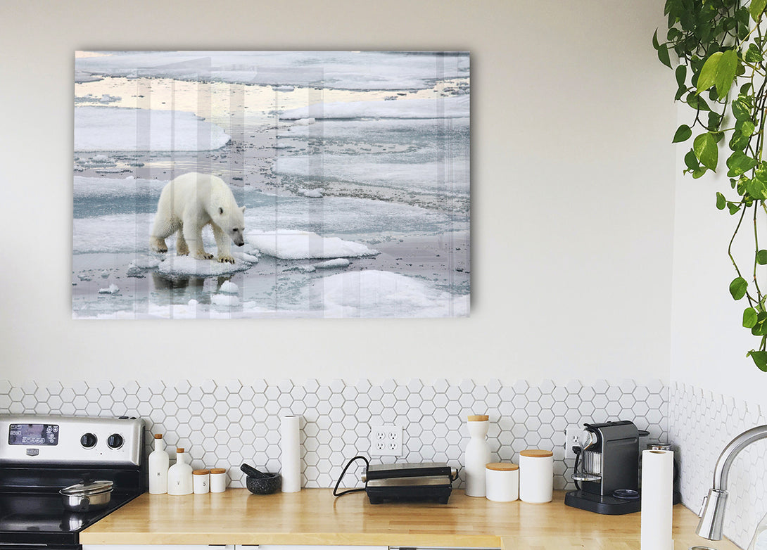 Polar Bear Iceburg acrylic print, UV printed onto 5mm thick acrylic glass. Comes with everything you need to hang on your wall.