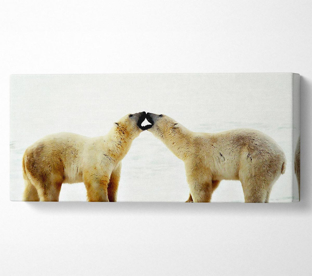 Polar Bear Love canvas, printed on coated polyester canvas. Mounted on to a 44mm box frame, ready to hang.