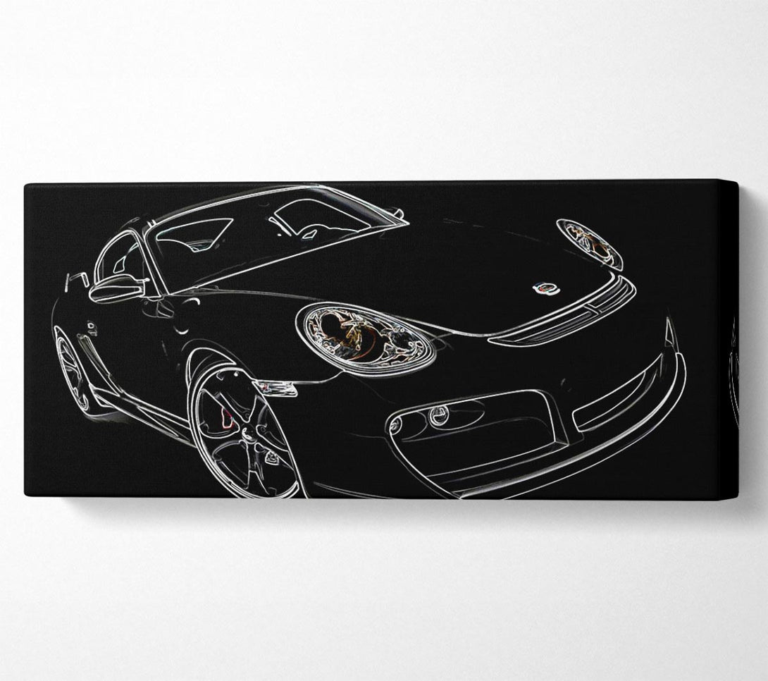 Porsche 911 White On Black canvas, printed on coated polyester canvas. Mounted on to a 44mm box frame, ready to hang.