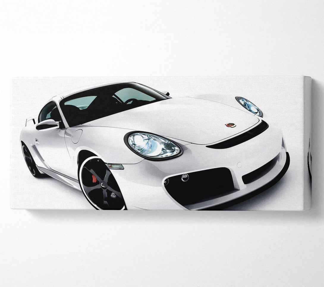 Porsche 911 White canvas, printed on coated polyester canvas. Mounted on to a 44mm box frame, ready to hang.