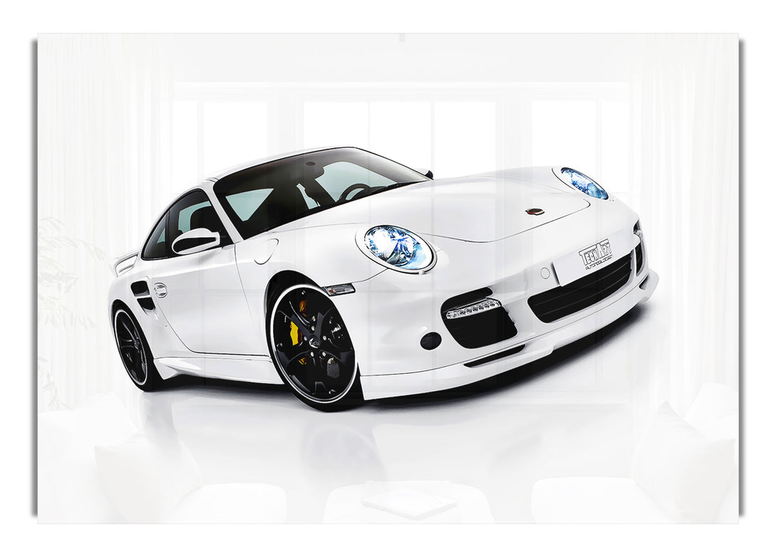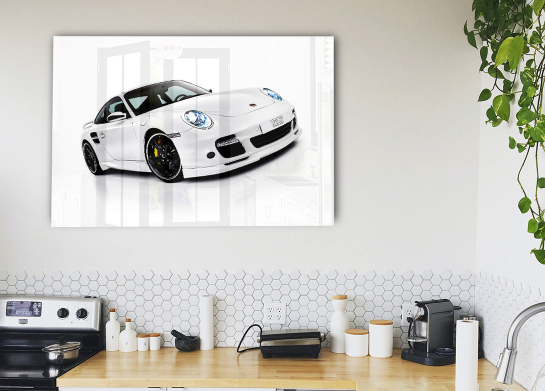 Porsche Gt White acrylic print, UV printed onto 5mm thick acrylic glass. Comes with everything you need to hang on your wall.