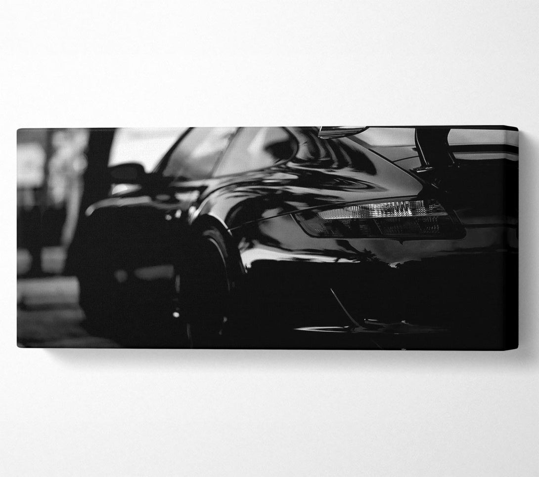 Porsche In Black canvas, printed on coated polyester canvas. Mounted on to a 44mm box frame, ready to hang.
