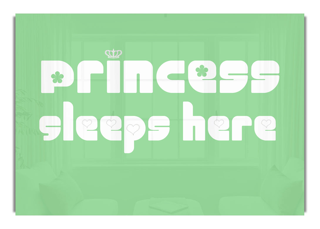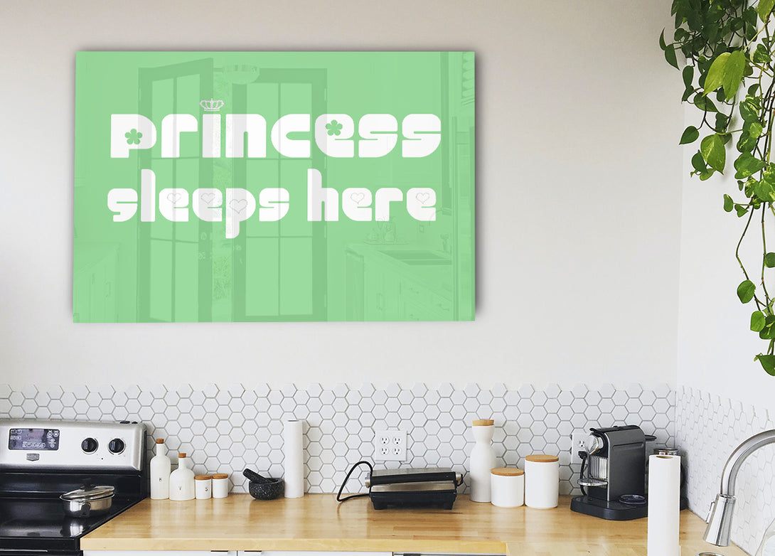 Princesss Sleeps Here 2 Green acrylic print, UV printed onto 5mm thick acrylic glass. Comes with everything you need to hang on your wall.