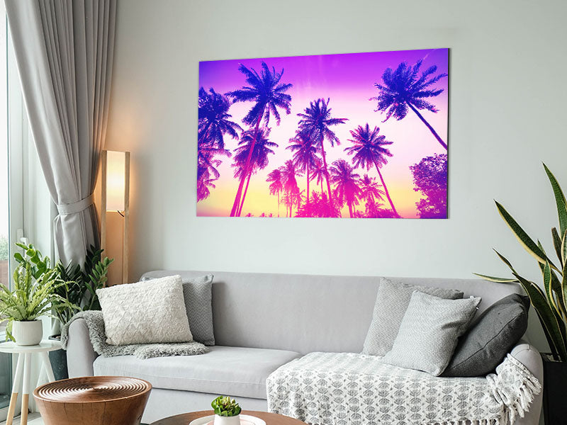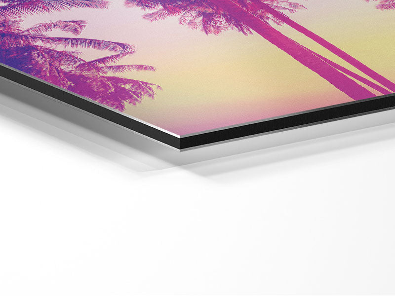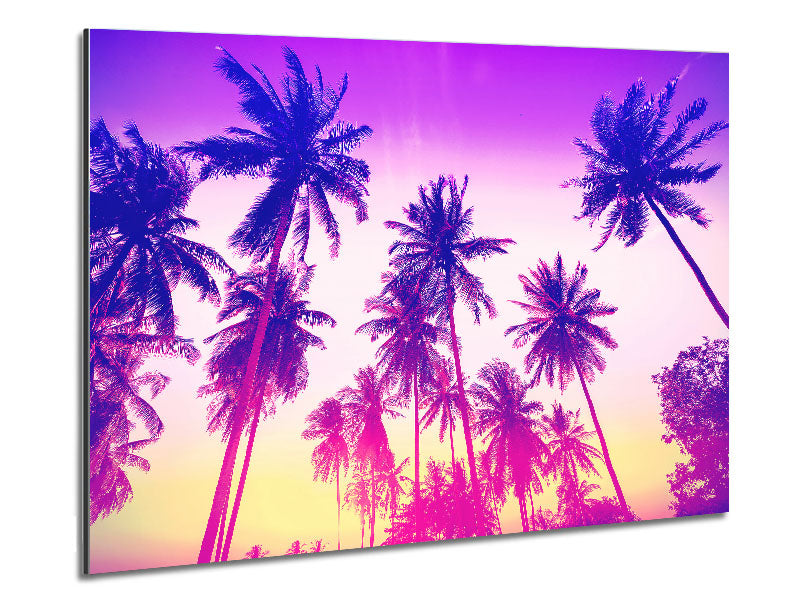 Psychedelic Palm Tree Skies Printed on brushed aluminium dibond. A modern way to display art and easy to maintain.