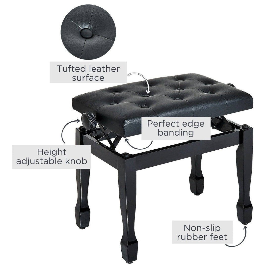This Piano Bench is made of solid wood frame and covered with PU leather. It looks elegant in any room as a furniture . It is height adjustable between 45-55 cm , ideal for players of all heights. It is an absolutely fantastic choice for pianists of all standard and ages who require a comfortable and durable seat.