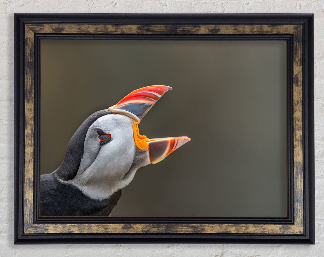 Puffin sounding the alarm Framed Print