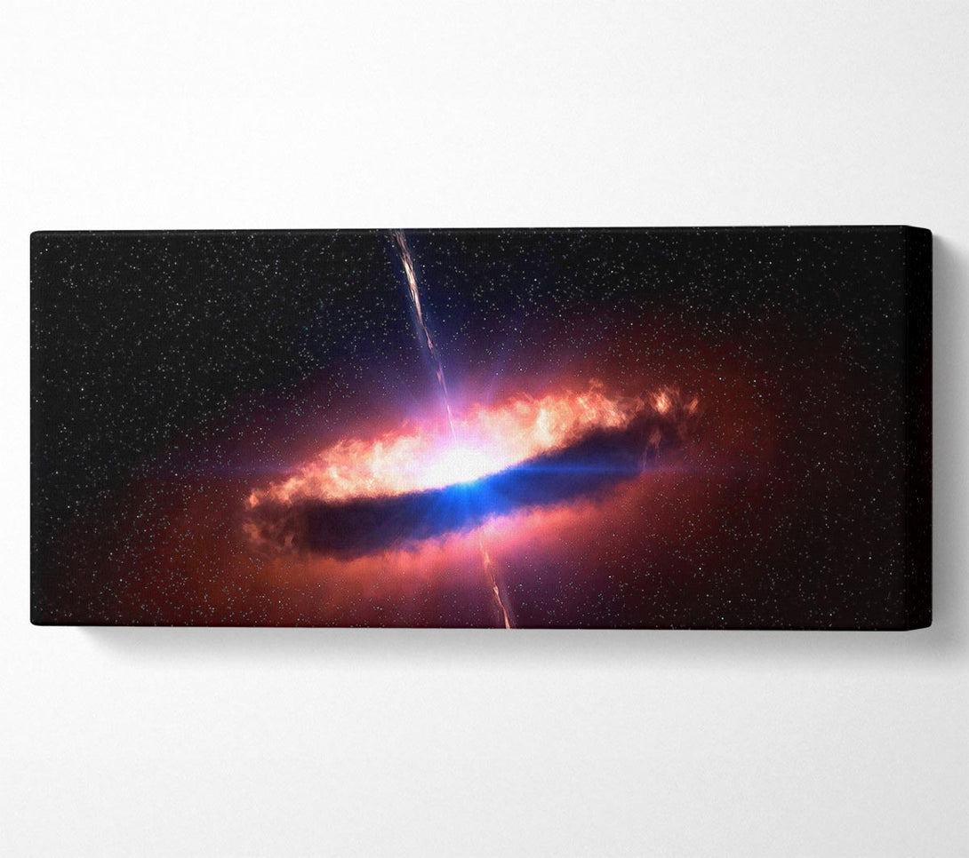 Pulsar canvas, printed on coated polyester canvas. Mounted on to a 44mm box frame, ready to hang.