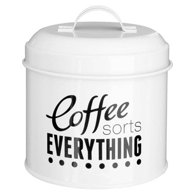 Each canister is made from galvanised steel, with a powder coated finish. Their glossy white surfaces each convey a specific beverage-related message in easy-to-read black font. Designed to keep tea, coffee and sugar fresh, each lid has a small handle, making it easy to open and close.