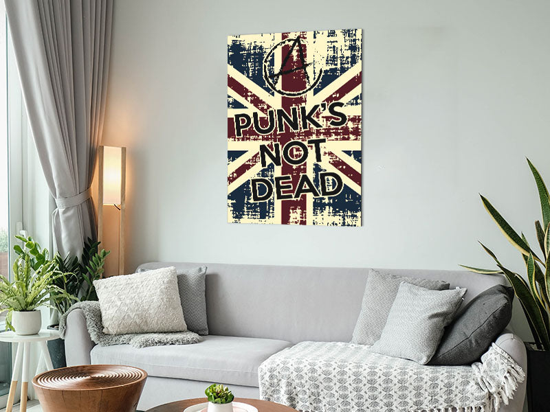 Punks Not Dead Printed on brushed aluminium dibond. A modern way to display art and easy to maintain.