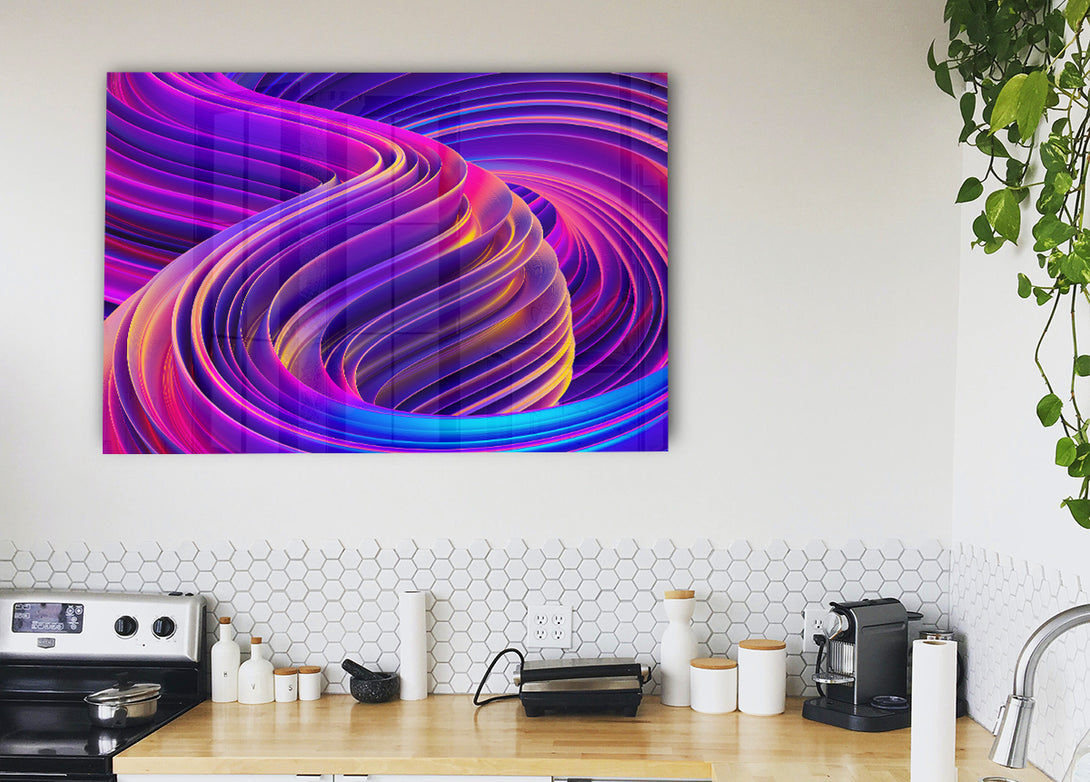Purple and blue swirl acrylic print, UV printed onto 5mm thick acrylic glass. Comes with everything you need to hang on your wall.