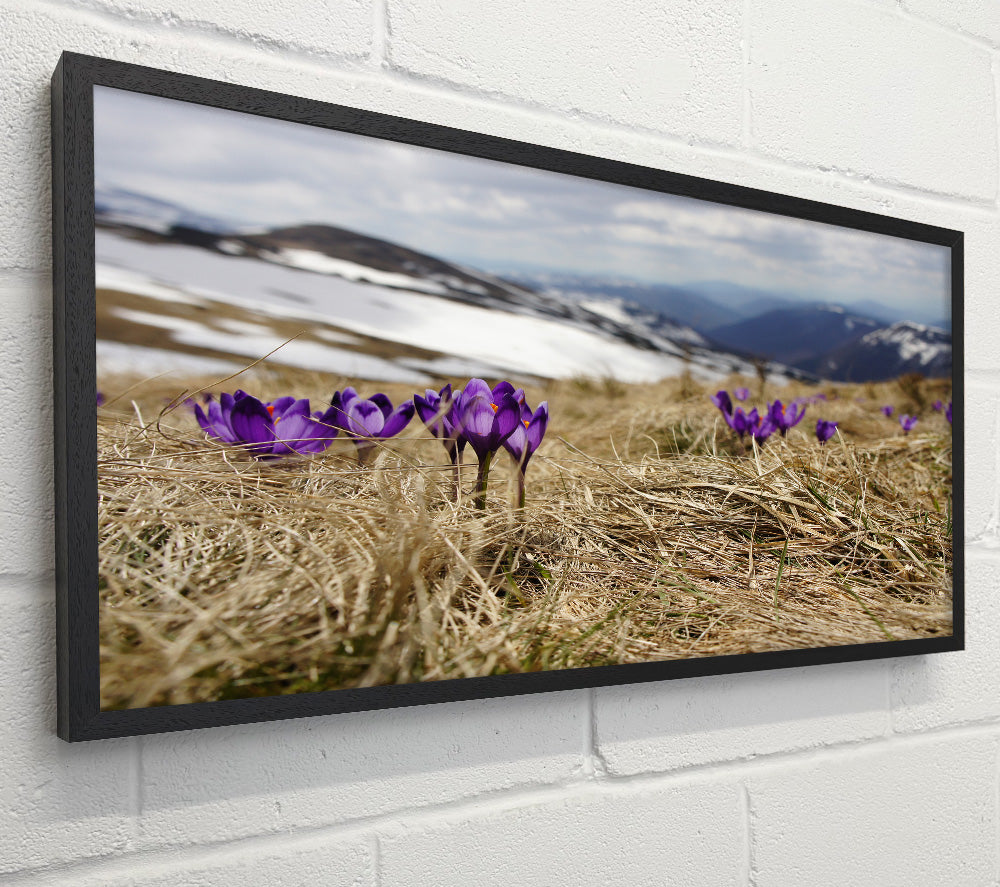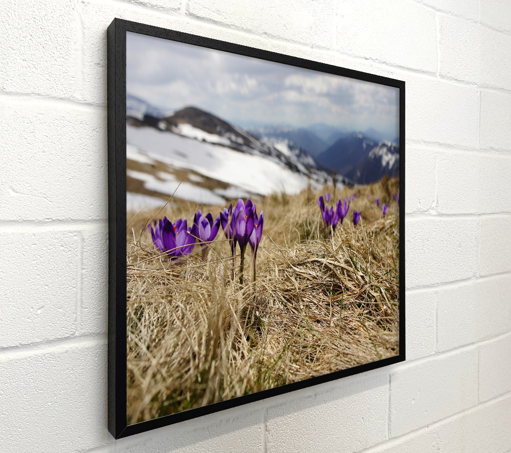 Purple crocus sprouting through the grass