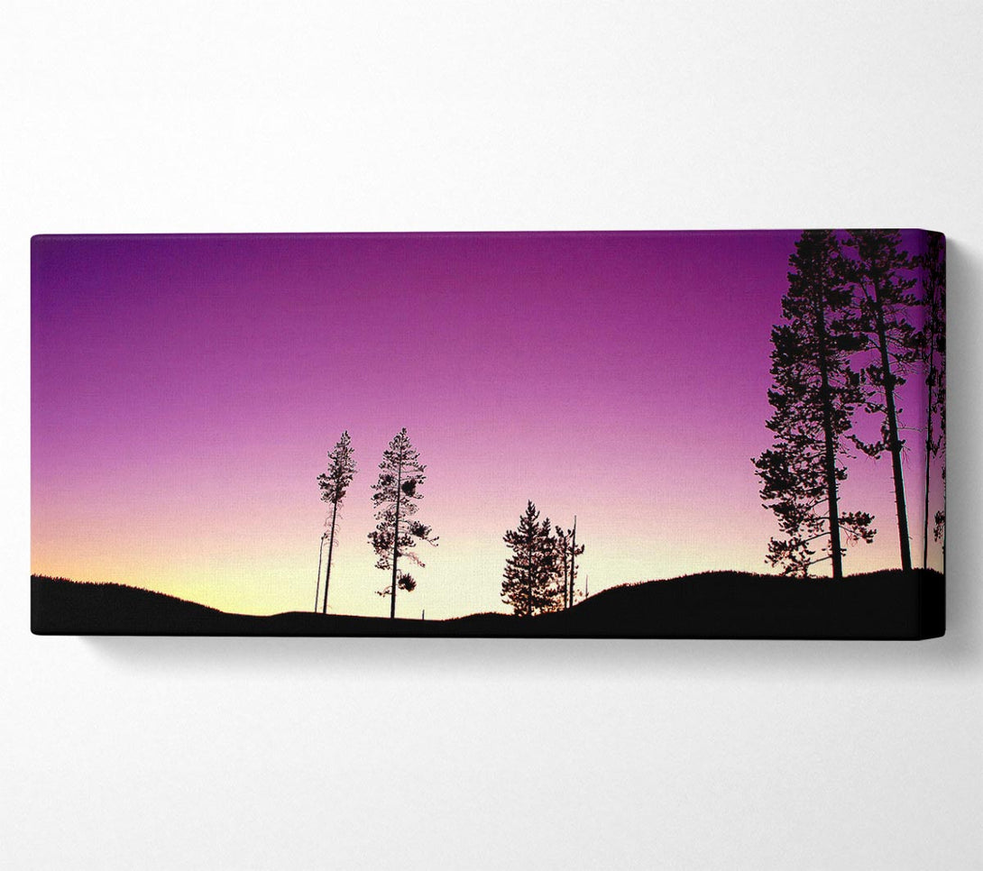 Purple Evening canvas, printed on coated polyester canvas. Mounted on to a 44mm box frame, ready to hang.