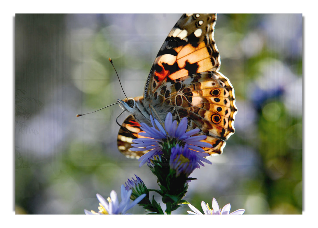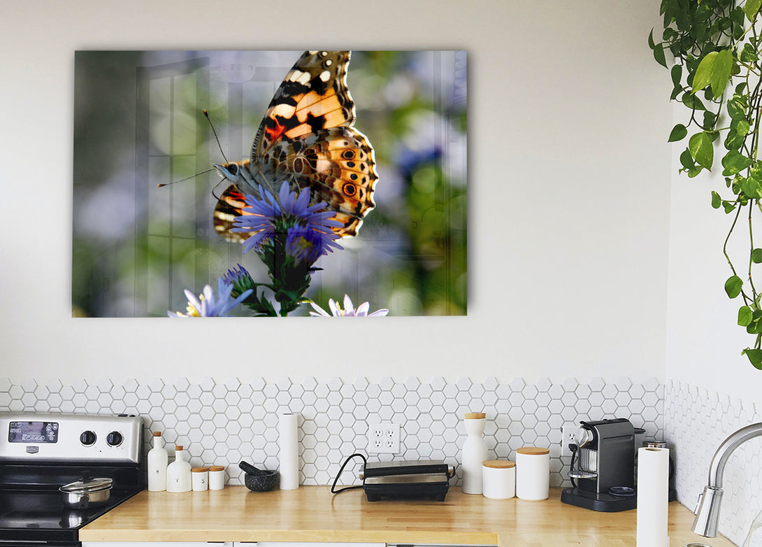 Purple Flower Butterfly acrylic print, UV printed onto 5mm thick acrylic glass. Comes with everything you need to hang on your wall.