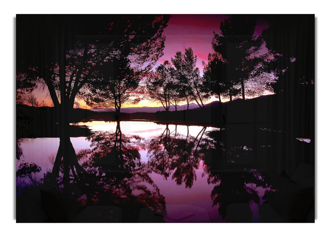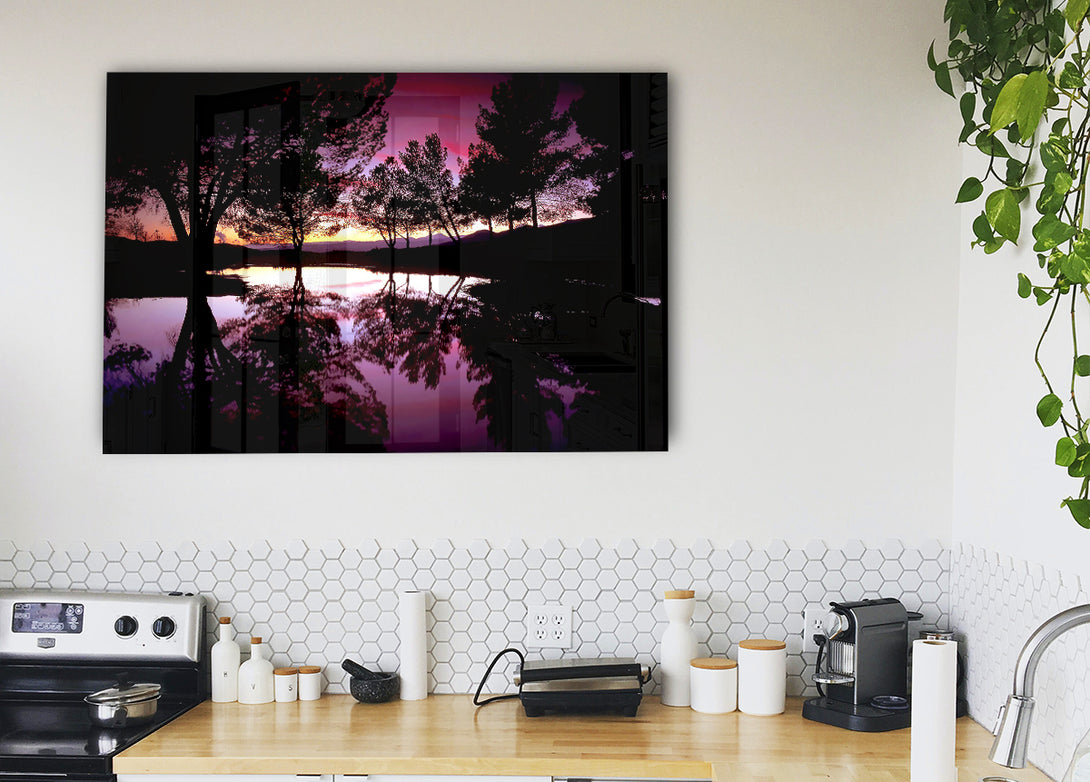 Purple Lake Calm acrylic print, UV printed onto 5mm thick acrylic glass. Comes with everything you need to hang on your wall.