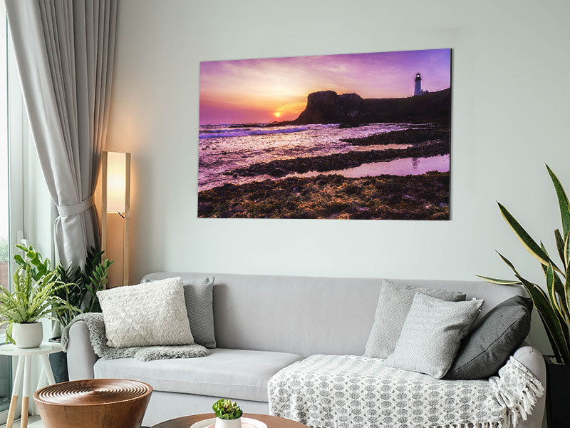 Purple Lighthouse Watch Printed on brushed aluminium dibond. A modern way to display art and easy to maintain.