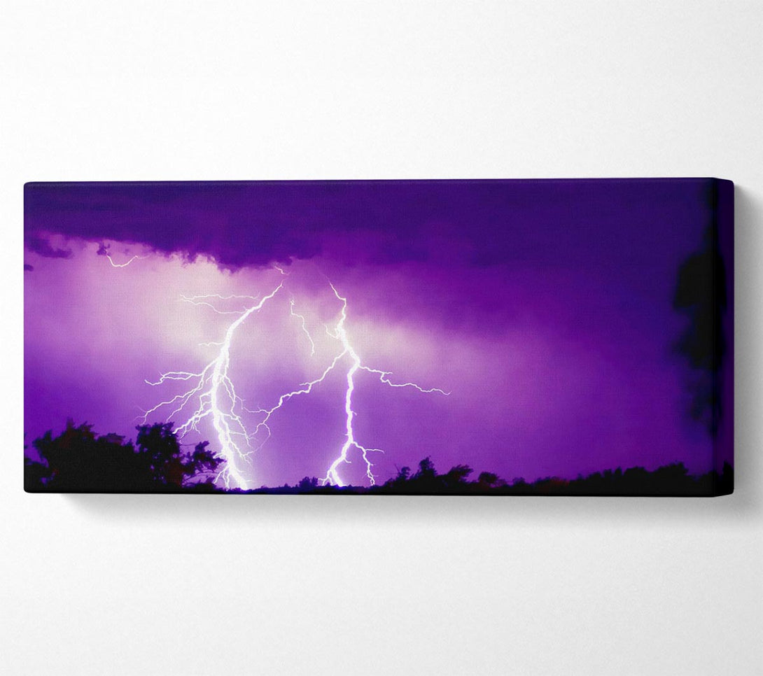 Purple Lightning Hill Tops canvas, printed on coated polyester canvas. Mounted on to a 44mm box frame, ready to hang.