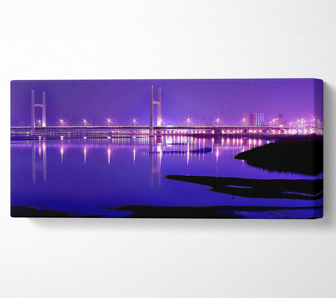 Picture of Purple Night Shoreline Panoramic Canvas Wall Art