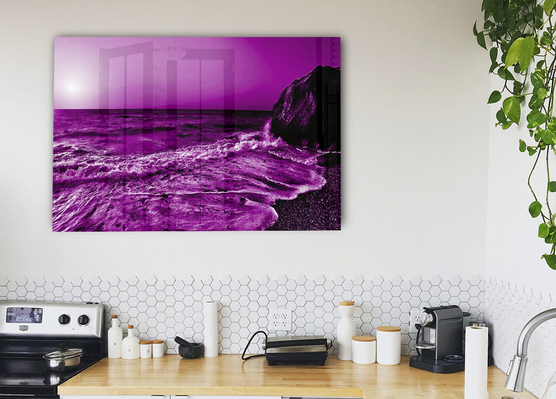 Purple Ocean Sun acrylic print, UV printed onto 5mm thick acrylic glass. Comes with everything you need to hang on your wall.