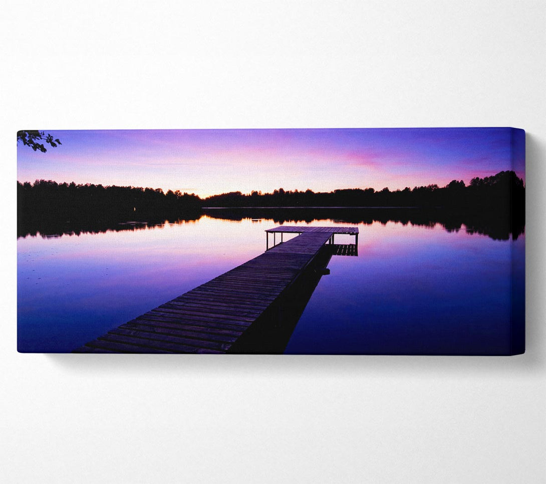 Purple Pier Calm canvas, printed on coated polyester canvas. Mounted on to a 44mm box frame, ready to hang.
