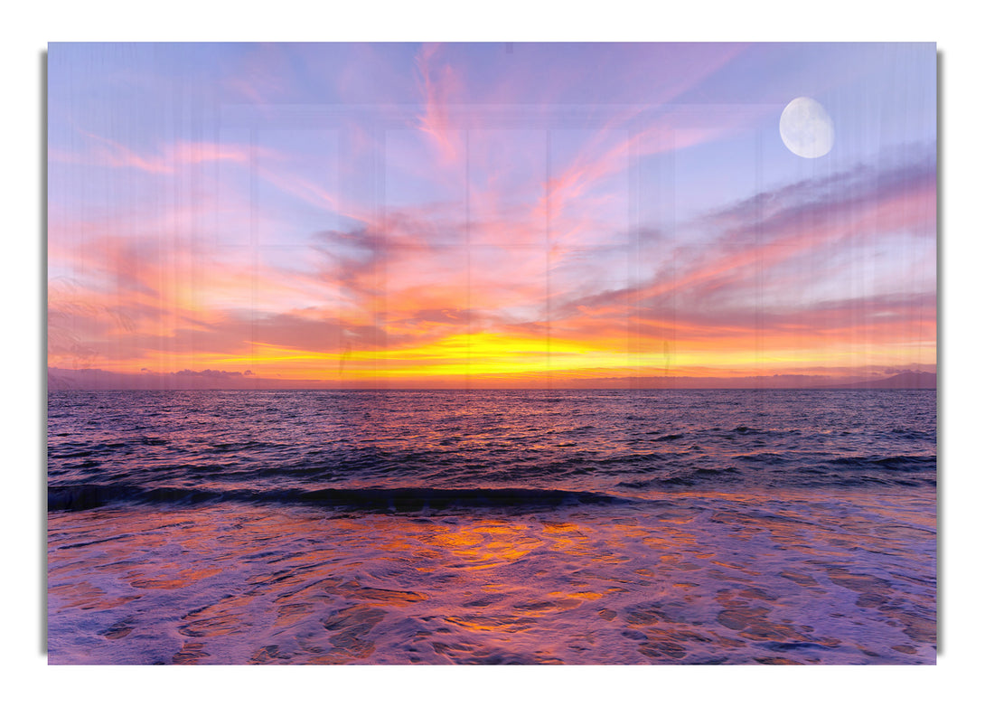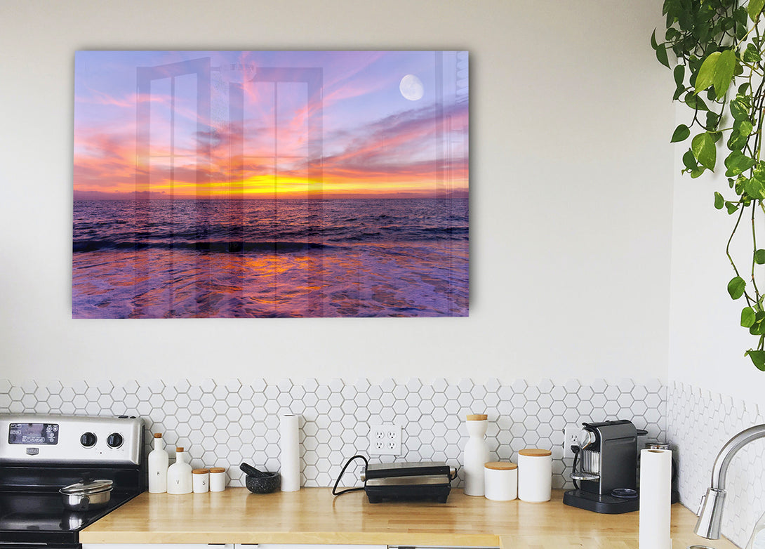 Purple Sun Glow Moon acrylic print, UV printed onto 5mm thick acrylic glass. Comes with everything you need to hang on your wall.