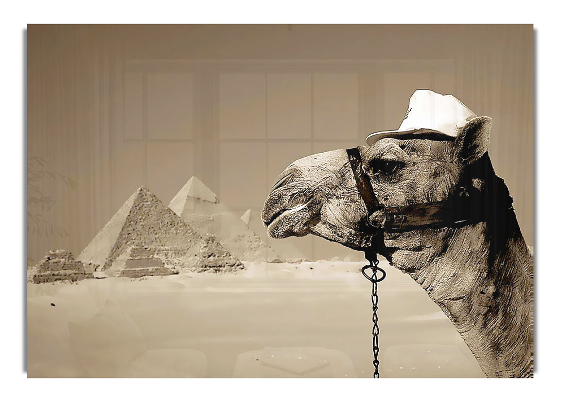 Pyramid Camel acrylic print, UV printed onto 5mm thick acrylic glass. Comes with everything you need to hang on your wall.