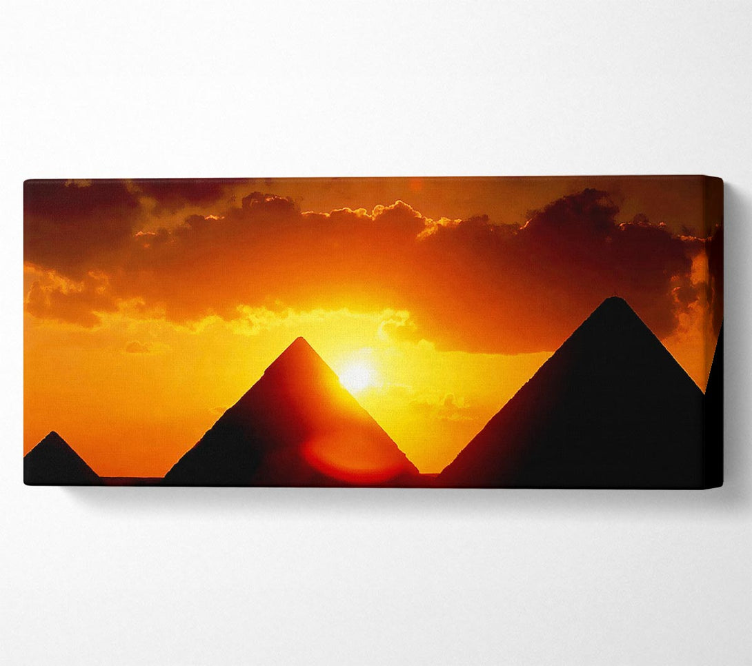 Pyramid Sunrise canvas, printed on coated polyester canvas. Mounted on to a 44mm box frame, ready to hang.