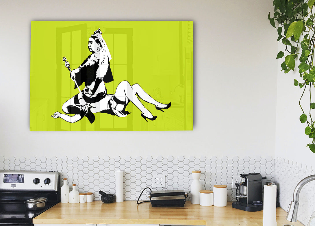 Queen Elizabeth Legs Lime acrylic print, UV printed onto 5mm thick acrylic glass. Comes with everything you need to hang on your wall.