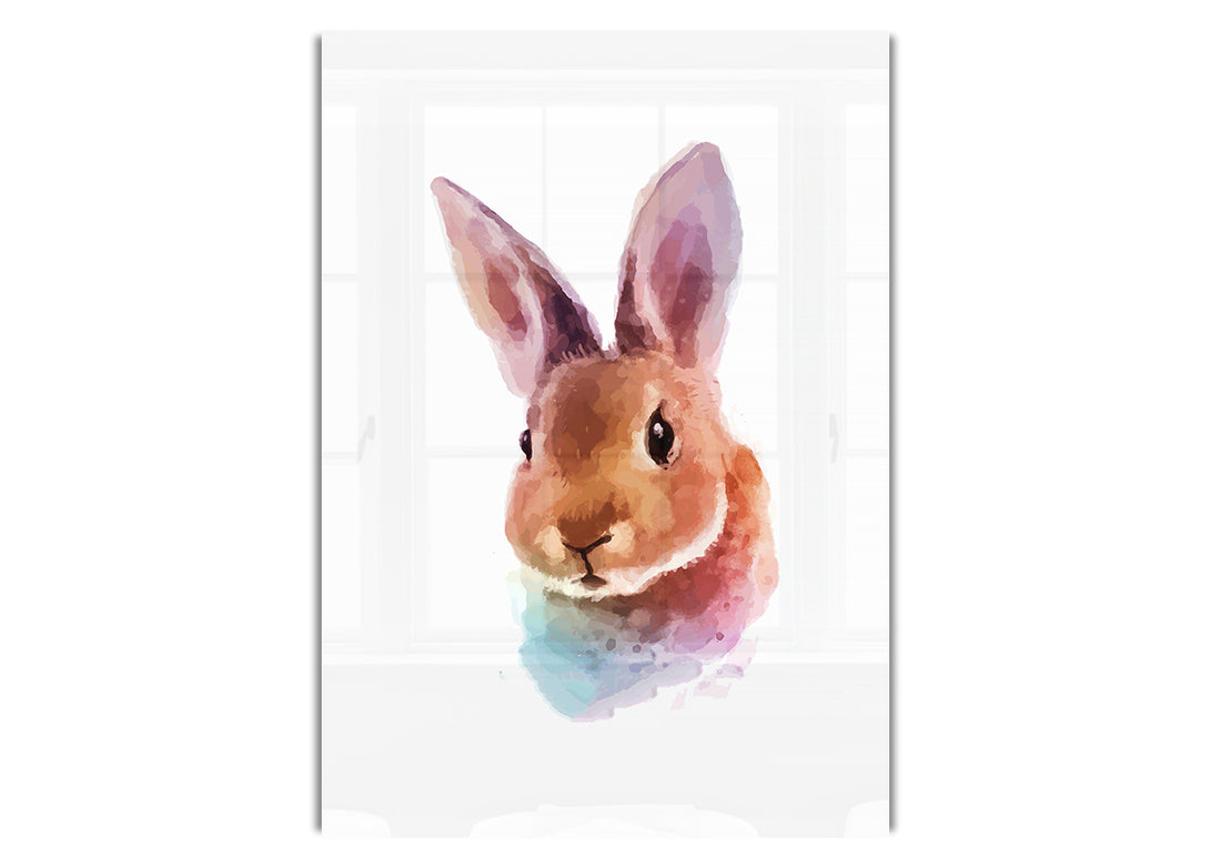 Rabbit Portrait acrylic print, UV printed onto 5mm thick acrylic glass. Comes with everything you need to hang on your wall.