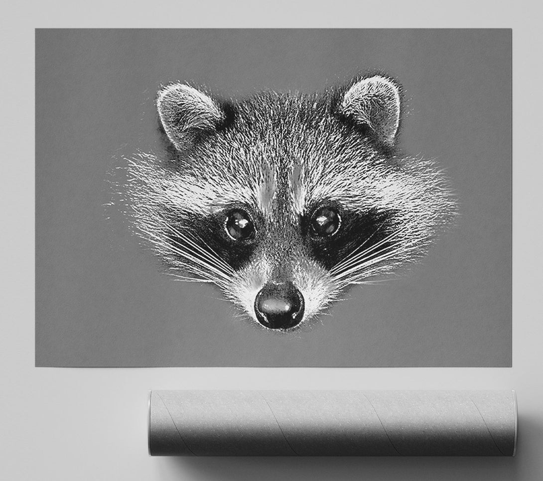 Our Raccoon On Grey Poster is printed 260 GSM premium lustre paper that offers vibrant colours and exceptional detail.