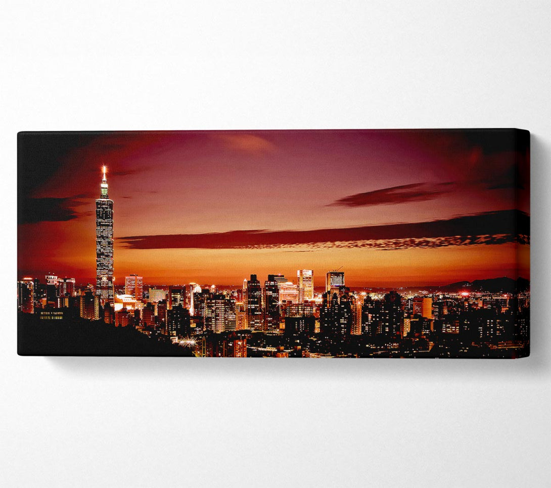 Picture of Radio Tower Beacon City Panoramic Canvas Wall Art