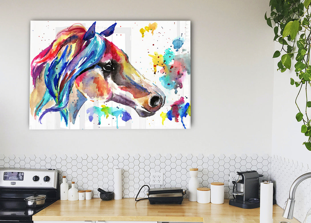 Rainbow Horse acrylic print, UV printed onto 5mm thick acrylic glass. Comes with everything you need to hang on your wall.