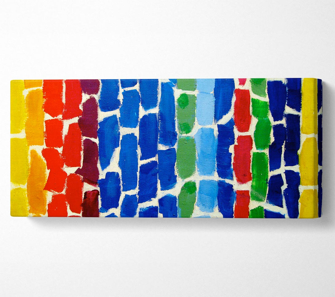 Rainbow canvas, printed on coated polyester canvas. Mounted on to a 44mm box frame, ready to hang.
