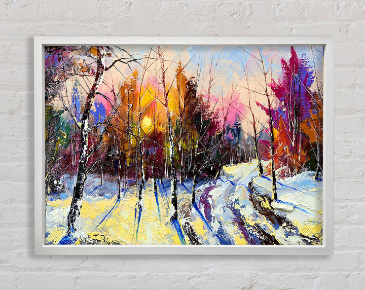 Introducing the Rainbow Snow Forest Framed Print, a stunning piece of framed art that brings a touch of magic to any room. This beautiful print captures a serene snowy forest bathed in a rainbow glow, creating an enchanting atmosphere. Available in six sizes, from small to oversized, it fits perfectly in any space, whether it's a cozy corner or a grand living room.