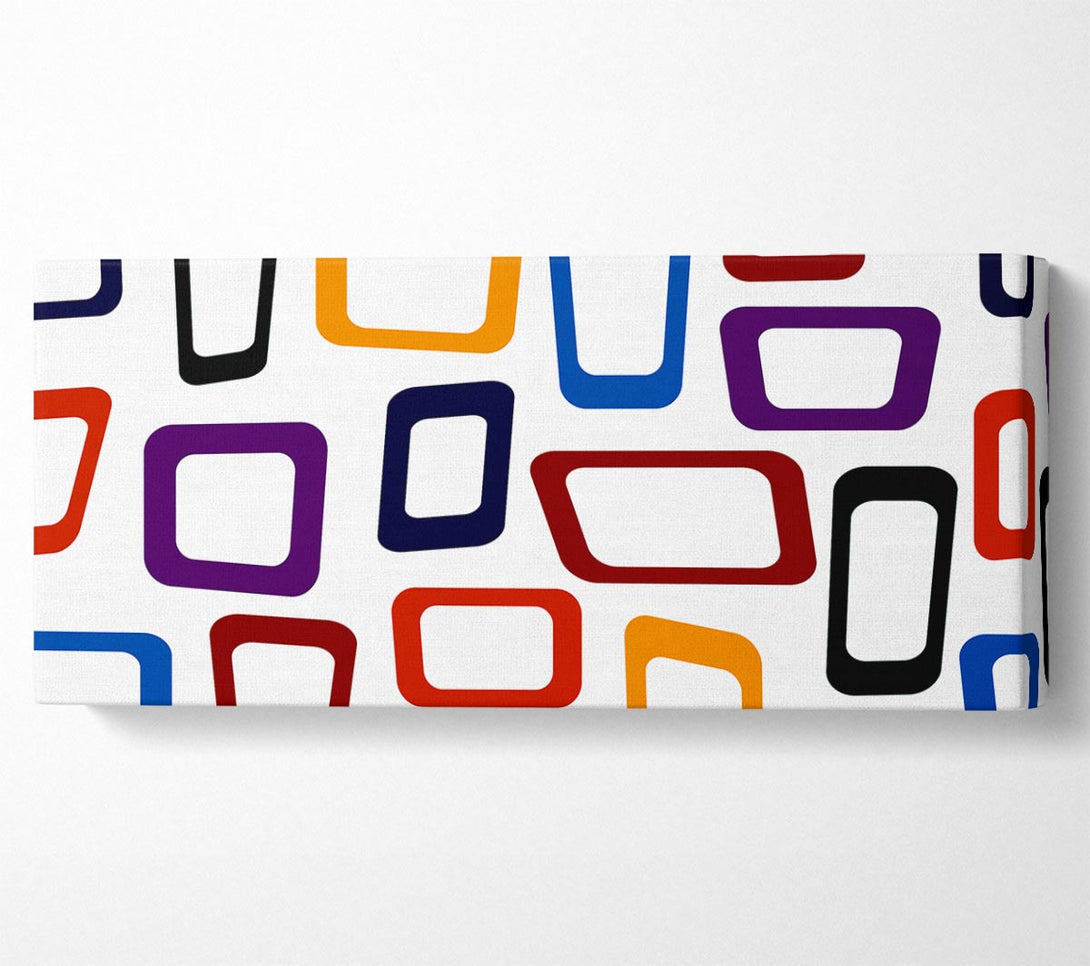 Rainbow Squares canvas, printed on coated polyester canvas. Mounted on to a 44mm box frame, ready to hang.