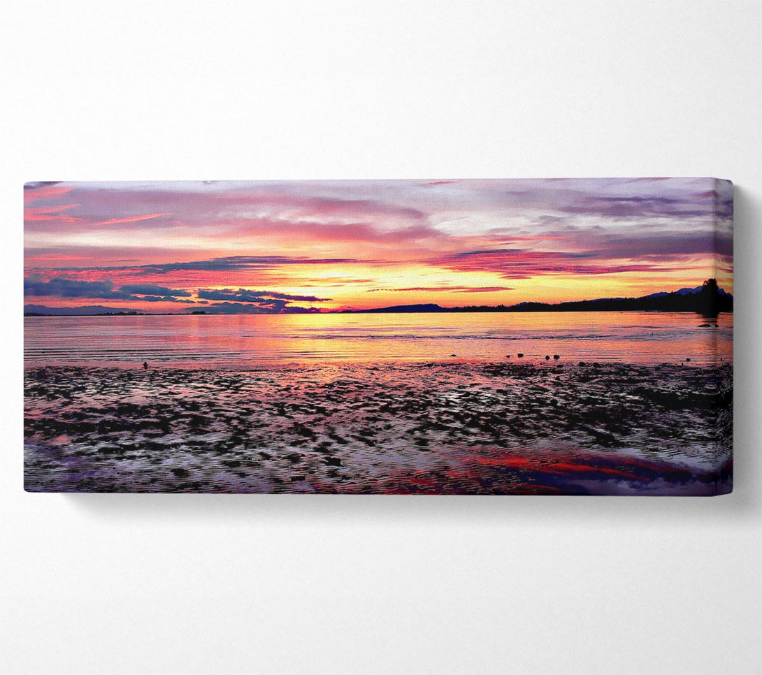 Rainbow Tides canvas, printed on coated polyester canvas. Mounted on to a 44mm box frame, ready to hang.
