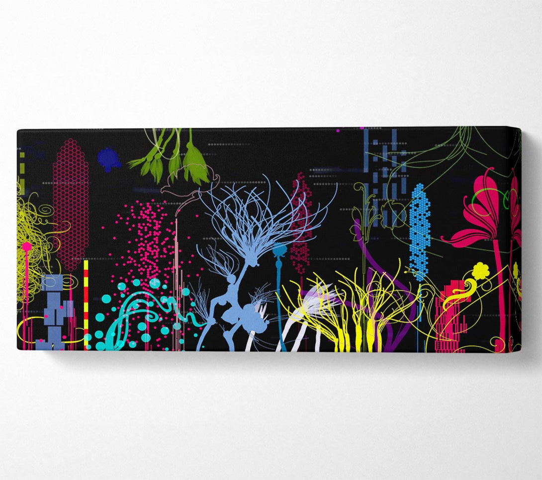 Rave Art canvas, printed on coated polyester canvas. Mounted on to a 44mm box frame, ready to hang.