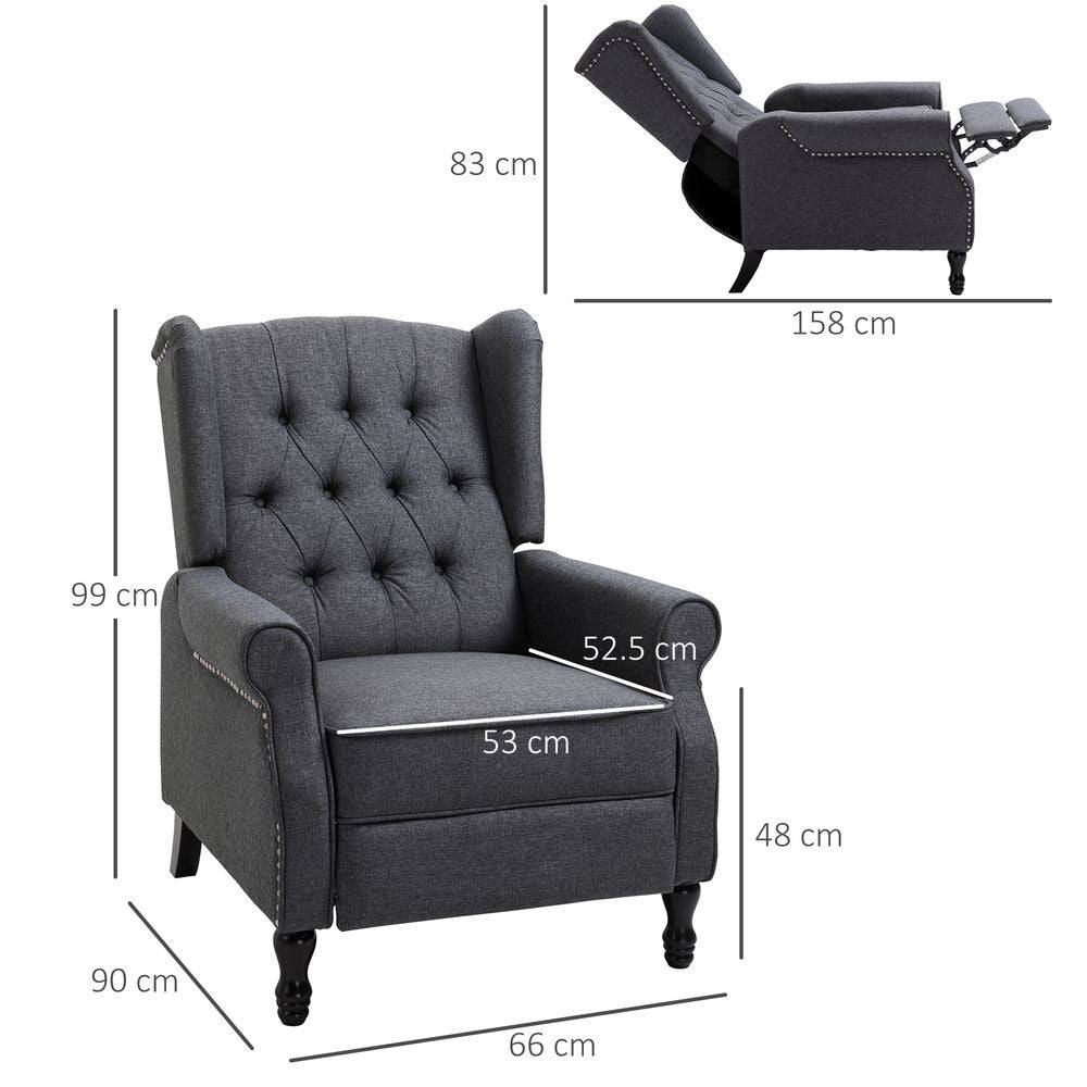 Recliner Armchair for Living Room Fabric Reclining Chair w/ Footrest Dark Grey