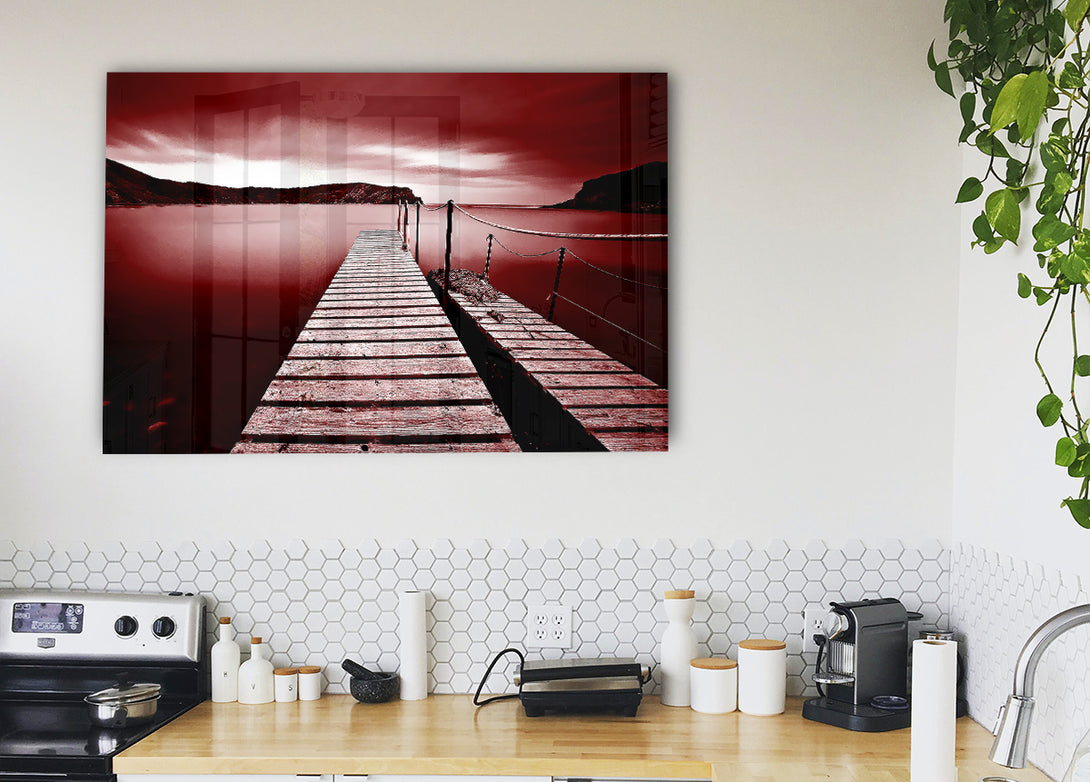 Red Abstract Pier acrylic print, UV printed onto 5mm thick acrylic glass. Comes with everything you need to hang on your wall.