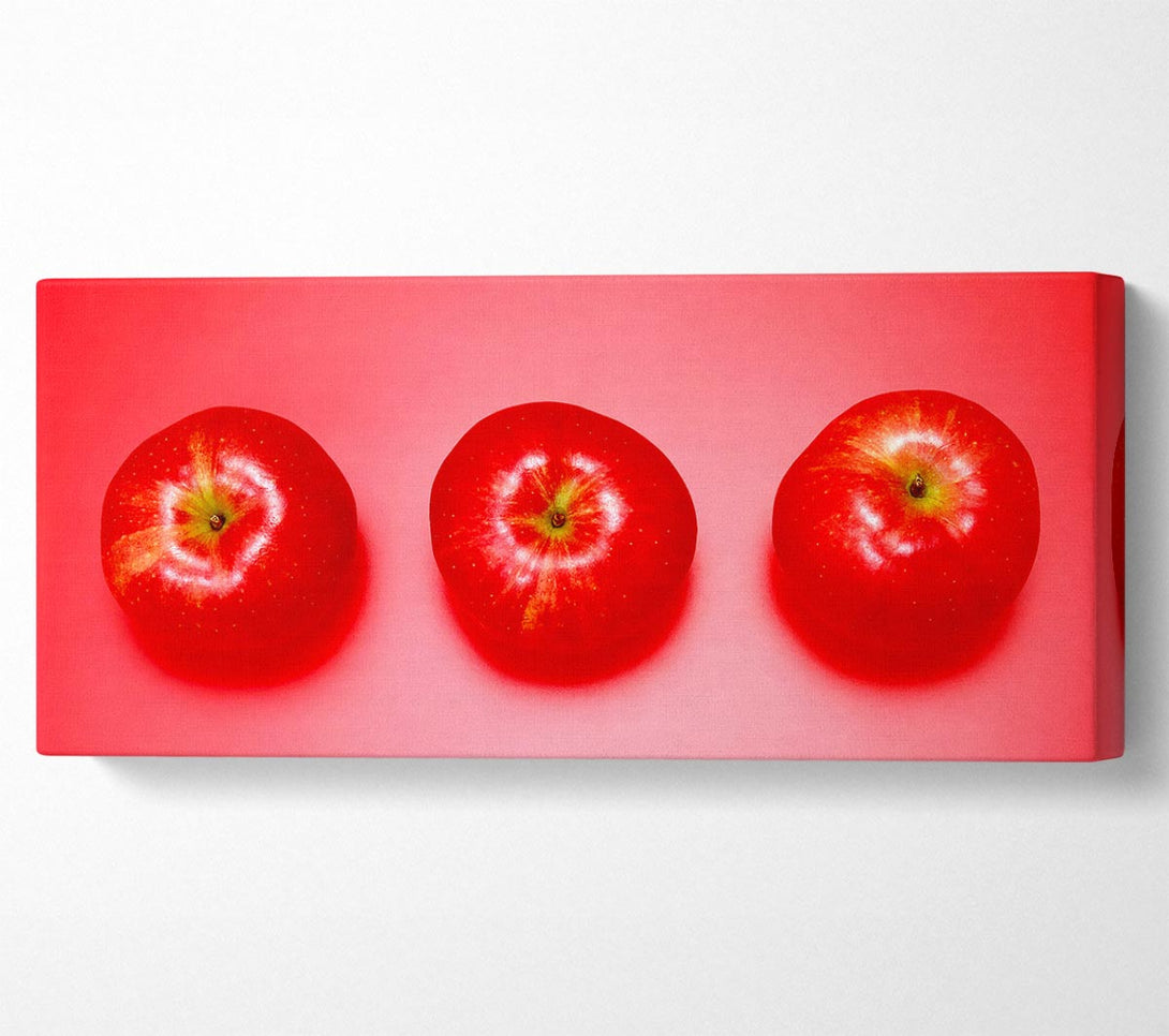 Red Apple Trio canvas, printed on coated polyester canvas. Mounted on to a 44mm box frame, ready to hang.