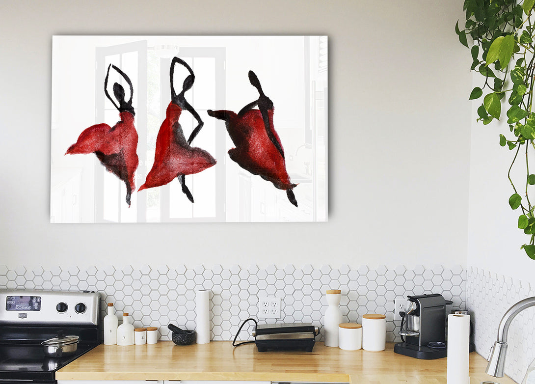 Red Ballarinas acrylic print, UV printed onto 5mm thick acrylic glass. Comes with everything you need to hang on your wall.