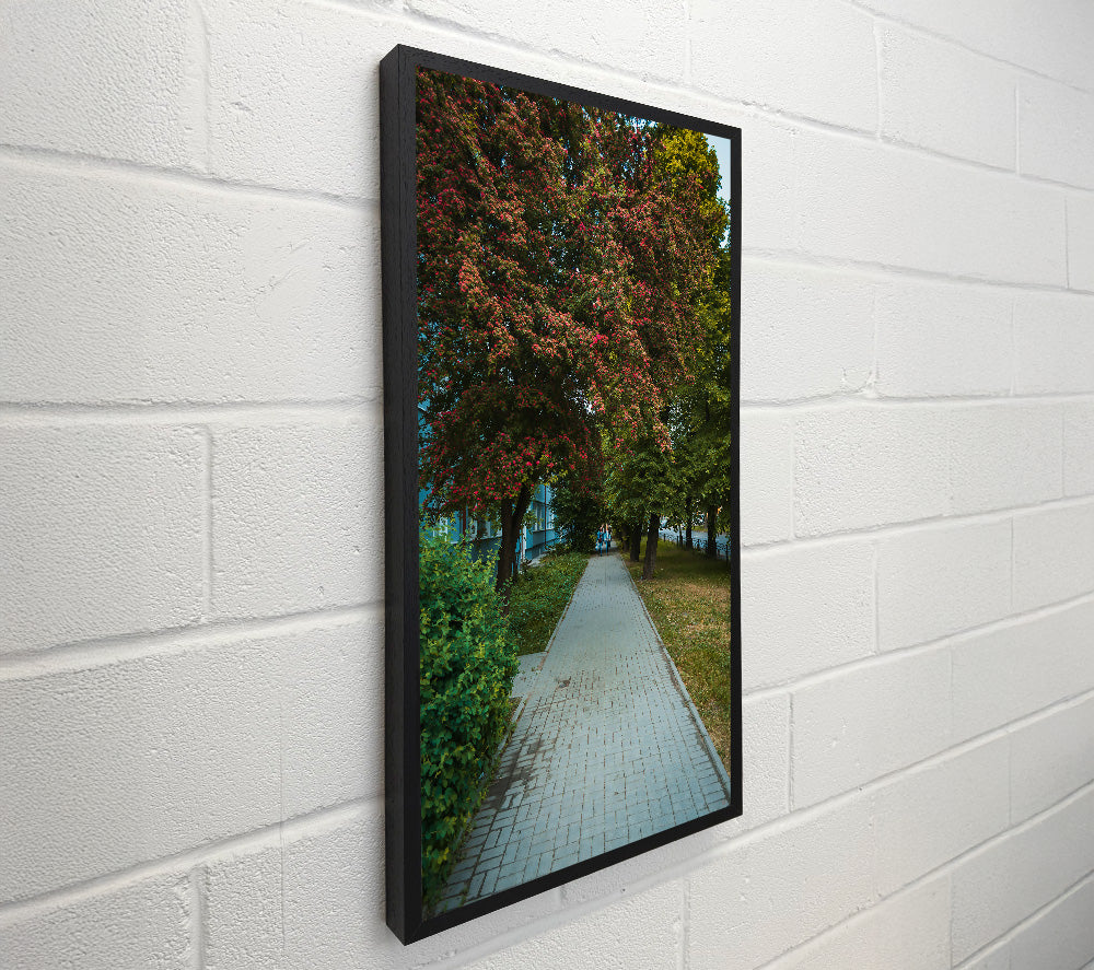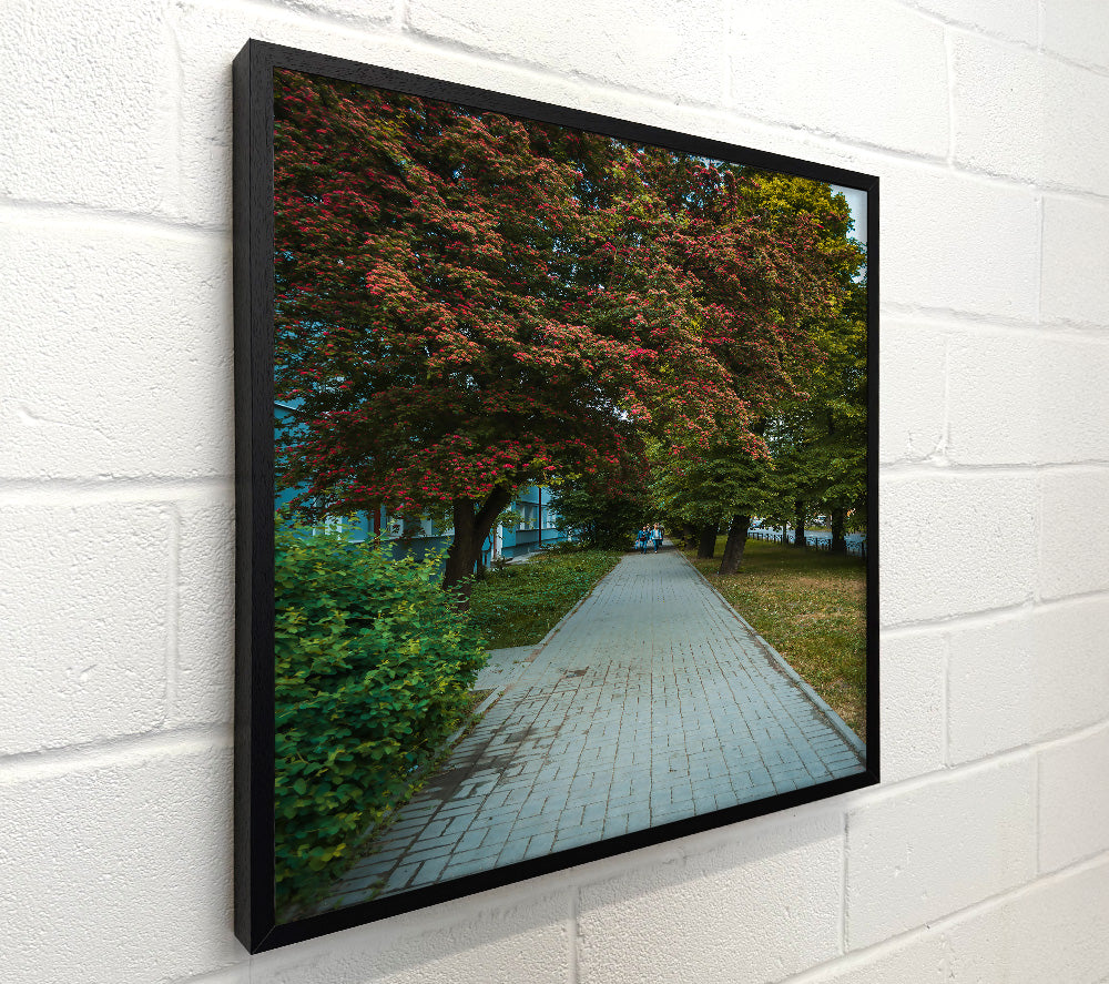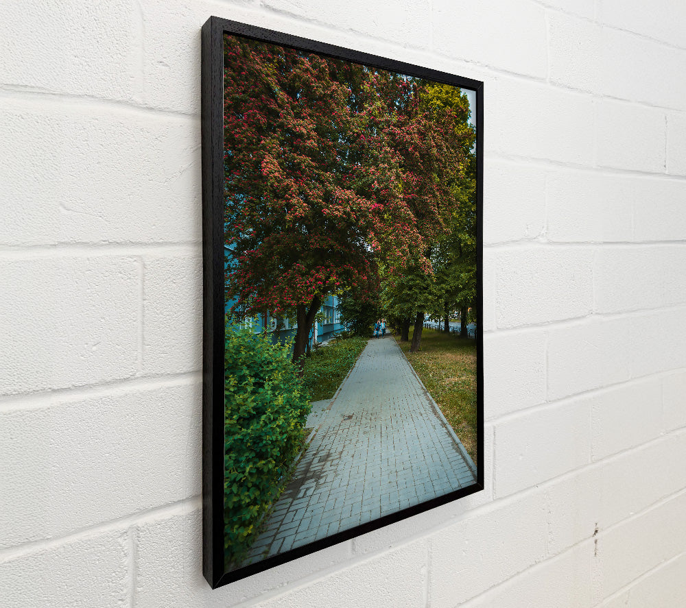 Red Blooms And Brick Path