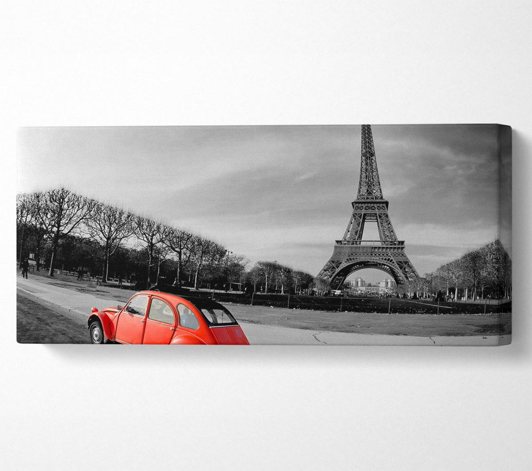 Red Car-Eiffel Tower Paris canvas, printed on coated polyester canvas. Mounted on to a 44mm box frame, ready to hang.