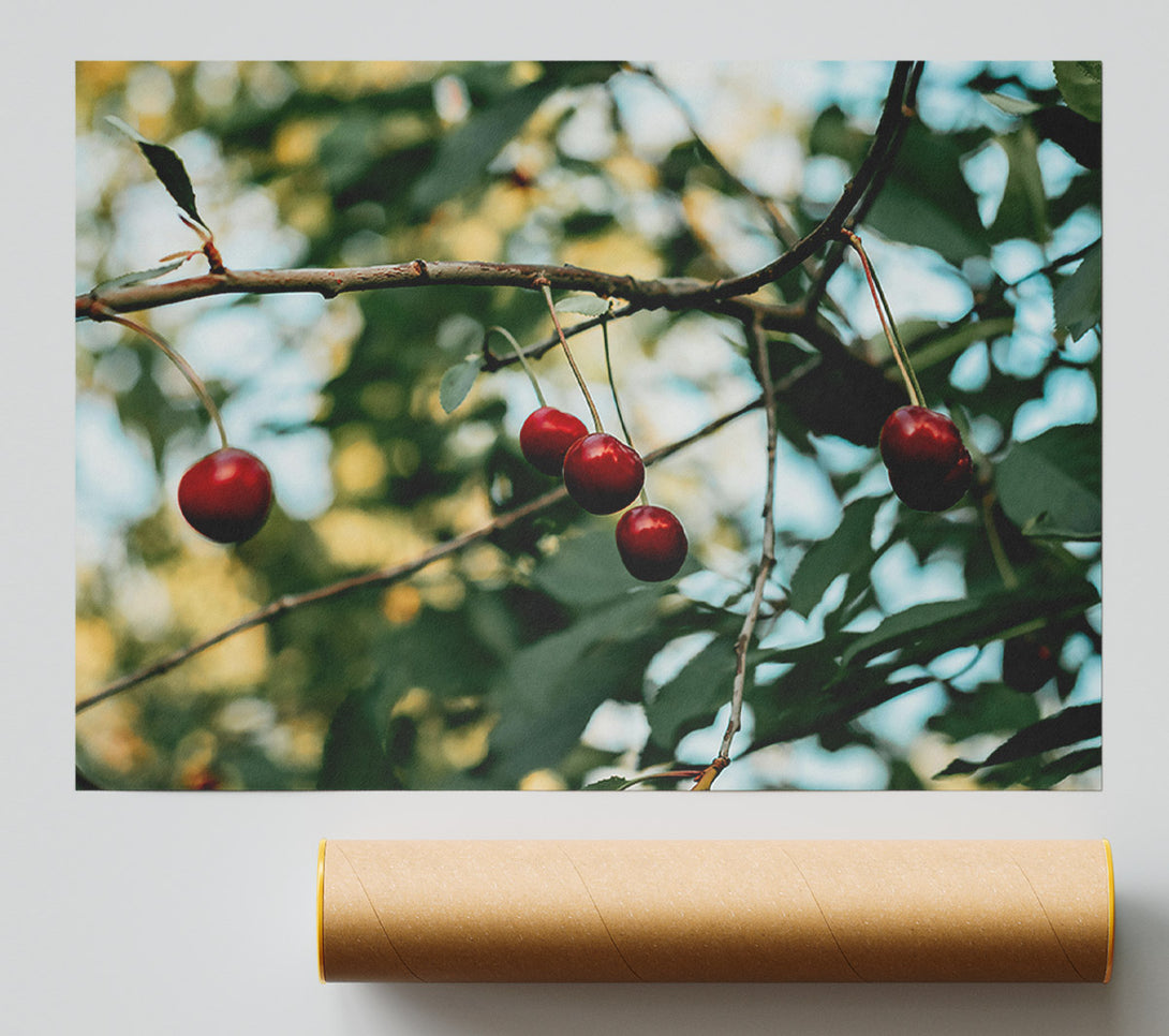 Our Red Cherries Hanging High Poster is printed 260 GSM premium lustre paper that offers vibrant colours and exceptional detail.