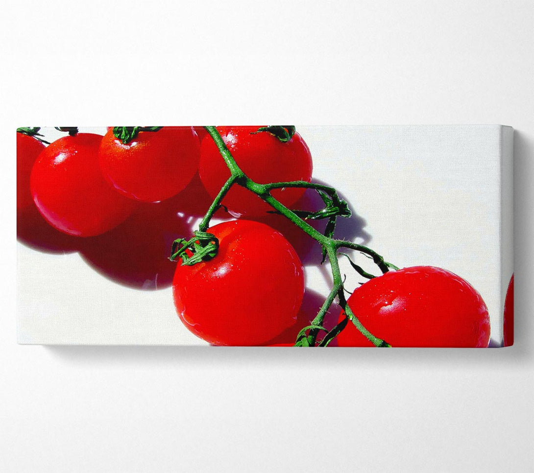 Red Cherry Tomato Vine canvas, printed on coated polyester canvas. Mounted on to a 44mm box frame, ready to hang.