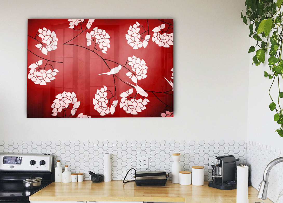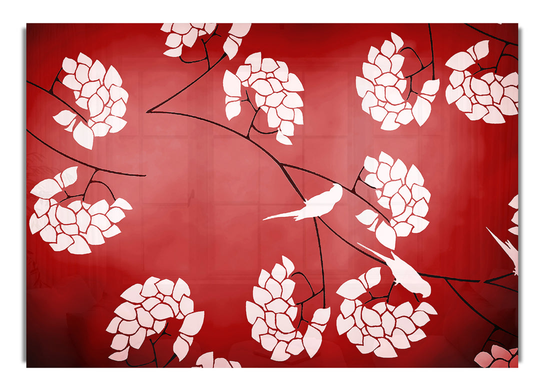 Red Feather Branches acrylic print, UV printed onto 5mm thick acrylic glass. Comes with everything you need to hang on your wall.