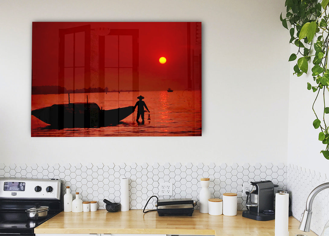 Red Fishermans Ocean acrylic print, UV printed onto 5mm thick acrylic glass. Comes with everything you need to hang on your wall.