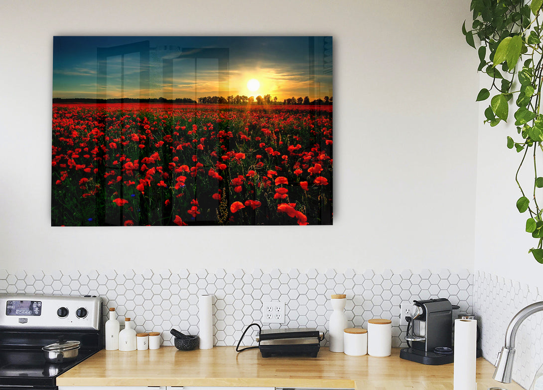 Red Flower Garden acrylic print, UV printed onto 5mm thick acrylic glass. Comes with everything you need to hang on your wall.