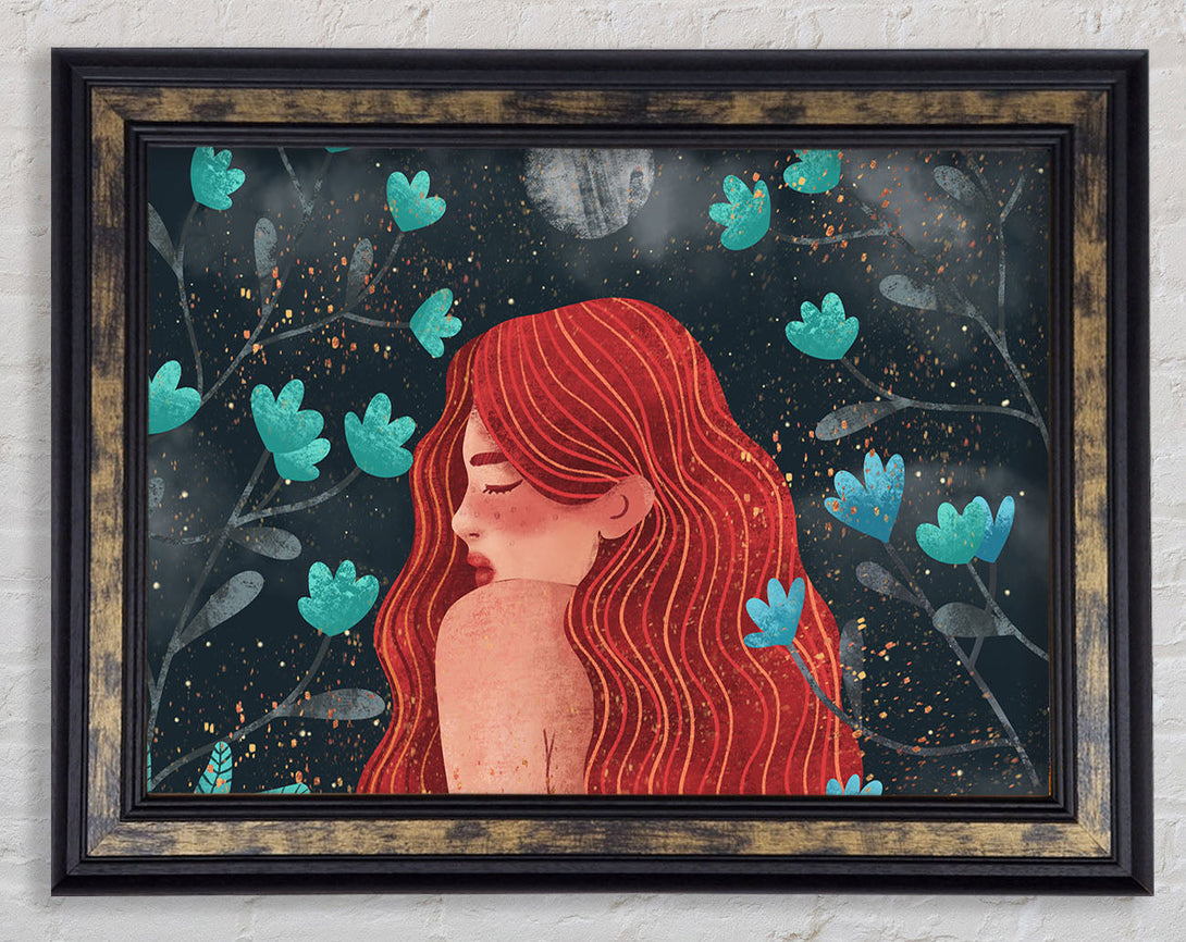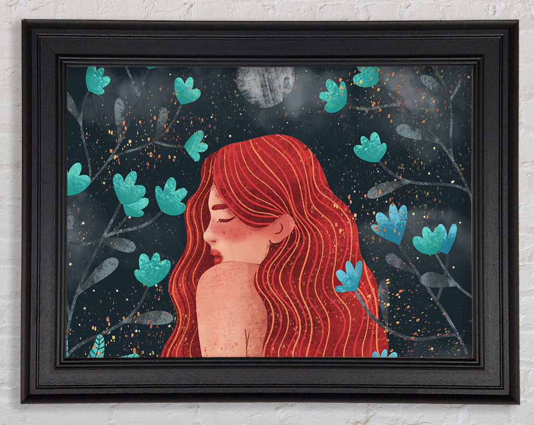 Red Haired Girl Flowers Framed Print